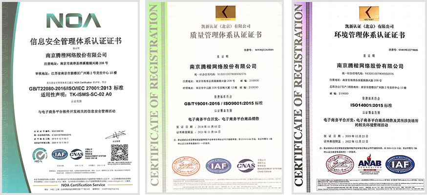 南京腾楷拥有专业的技术团队,为积分平台的设计、搭建及运维、管理工作提供了强大的技术支撑。腾楷拥有国内外权威机构颁发的“信息安全管理体系认证证书”、“质量管理体系认证证书”、 “质环境管理体系认证证书”、“2019领先科技成果优秀项目”等多项行业资质。为各大企业提供了更安全、更高效的积分商城服务和管理系统奠定基础。